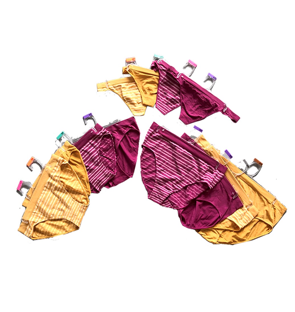 Colores y Tallas: Thongs: 2 solid colors and 2 striped colors, S-M-L-XL. Bikinis regular sizes: 3 solid colors and 2 striped colors, S-M-L-XL. Bikinis plus sizes: 2 solid colors and 2 striped colors,